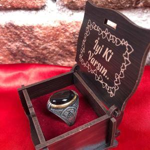 Siyah Taşlı Gümüş Erkek Yüzlük