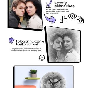 Karakalem Resimli Kişiye Özel Duvar Saati