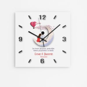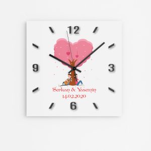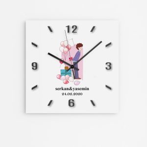 Sevgililer Günü Tasarımlı Kare Duvar Saati