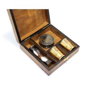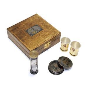 Ahşap Kutulu Kumsaati Pusulalı Ve Shot Bardak Seti