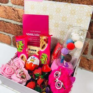 içeriğindeki ışıklı biblo ve romantik aksesuarlarla romantik anlarınıza ışık katacak. Fanusun içinde parlayan ışıklar, sevgilinizle geçirdiğiniz anları daha da özel hale getirecek. Ayrıca, içeriğindeki sevgili cüzdanı ve baykuş anahtarlık gibi romantik aksesuarlar da onun kalbini çalacak. Tatlı sürprizlerle dolu bu set, çikolata çeşitleri ve süpriz yumurta gibi lezzetli ikramlarla sevgilinizi tatlandıracak.