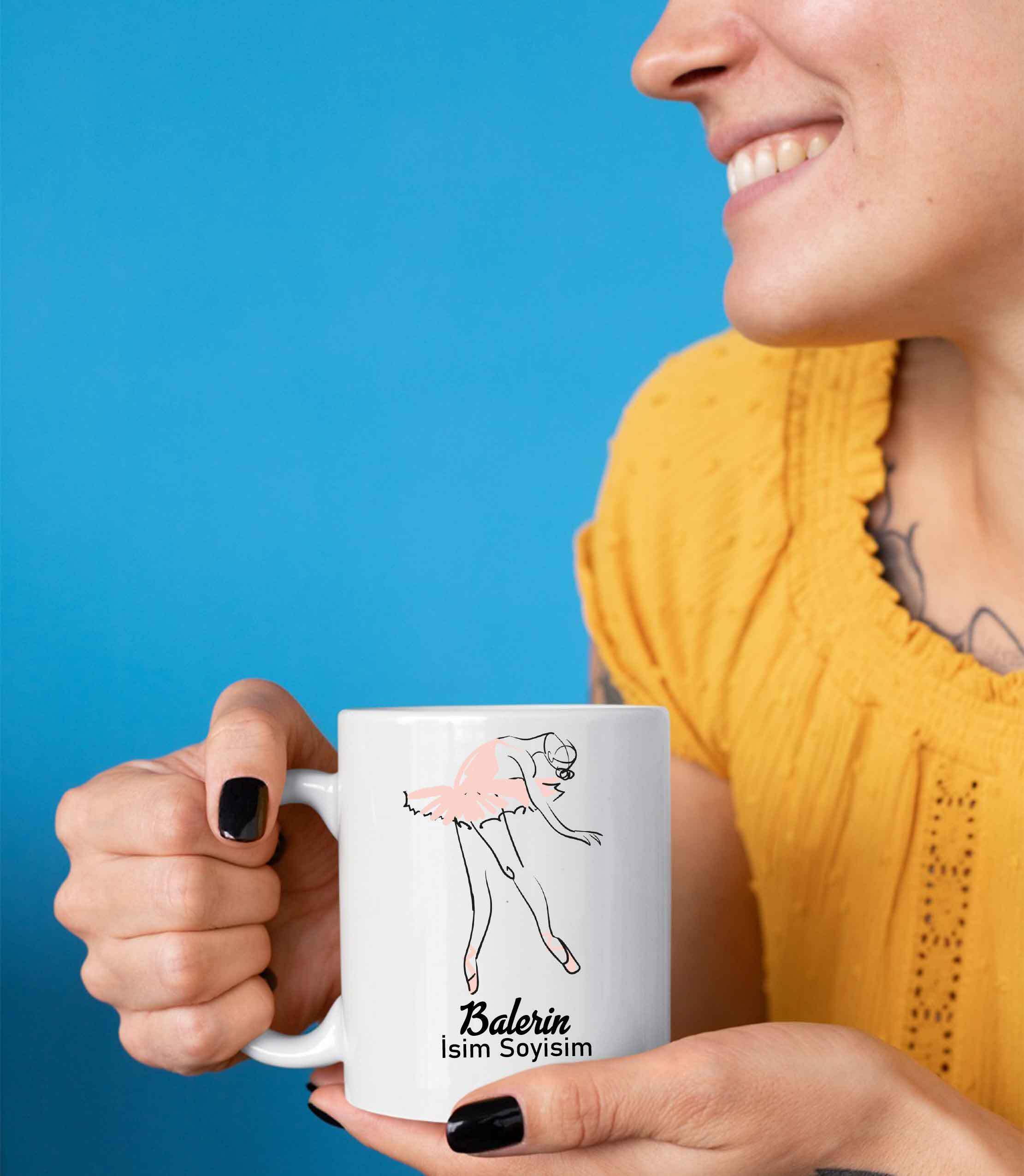 Balerin Tasarımlı Beyaz Kupa Bardak