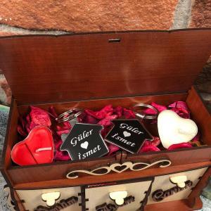 Bu setin içeriğindeki ürünlerin her biri sevgi ve romantizmle doludur. Çift ev anahtarlığı, birlikte yaşanan anıları ve sevgiyi sembolize eder. Kalpli mumlar, romantik bir atmosfer yaratmanıza yardımcı olur ve sevdiklerinizin keyifli bir zaman geçirmesini sağlar. Aşk sözleri ve gül kuruları, duygusal bir ifadeyle sevginizi anlatmanızı sağlar. Cam şişe, içerisine özel notlar veya mesajlar koyarak sevginizi ifade etmenize olanak tanır. Kremler ve napoliten çikolatalar ise sevdiklerinizi şımartmanız için tatlı bir dokunuş sunar. Gül biblosu ise zarif bir dekoratif parça olarak odalarında veya çalışma alanlarında kullanılabilecek şık bir hediye seçeneğidir.