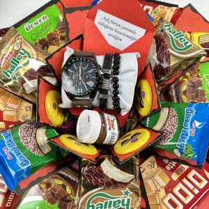 Erkek Saatli Çikolatalı Patlayan Kutu