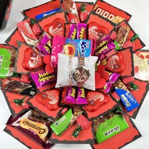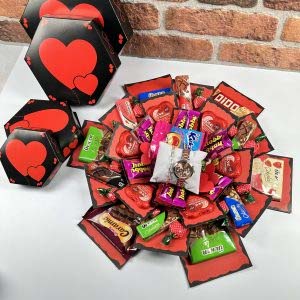 Bu özel kutu, bir patlama efektiyle açılarak içindeki sürprizleri ortaya çıkarır. Kutunun açılmasıyla beraber sevdikleriniz, şık bir kadın saati ve lezzetli çikolatalarla karşılaşır. Kadın saati, zarif bir tasarıma sahip olup bileğe şıklık katar. Aynı zamanda çikolatalar, birbirinden farklı tatlarla damakları şenlendirir.