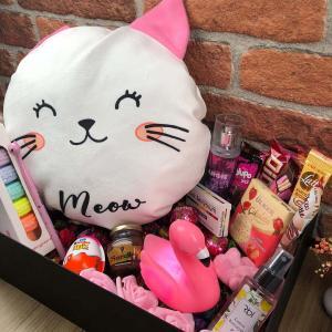 Kedi Tasarımlı Yastıklı Kombin Set, kedi sevenler için mükemmel bir hediye seçeneğidir. Bu özel hediyelik set, içerdiği sevimli kedi yastık, ledli flamingo, çikolata çeşitleri, sarelle, süpriz yumurta, vücut spreyi, el spreyi ve makaron kutusu ile alışılmışın dışında eğlenceli bir hediye sunuyor. Kedi severlerin kalbini fethedecek bu şirin kombin set, sevdiklerinize ne kadar düşkün olduğunuzu ve onları ne kadar iyi tanıdığınızı göstermenin harika bir yoludur.