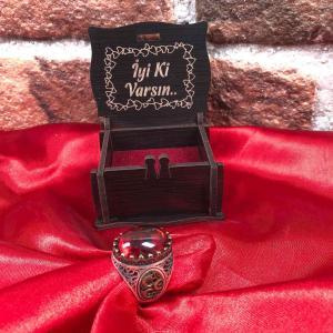 Kırmızı Taşlı Gümüş Erkek Yüzlük