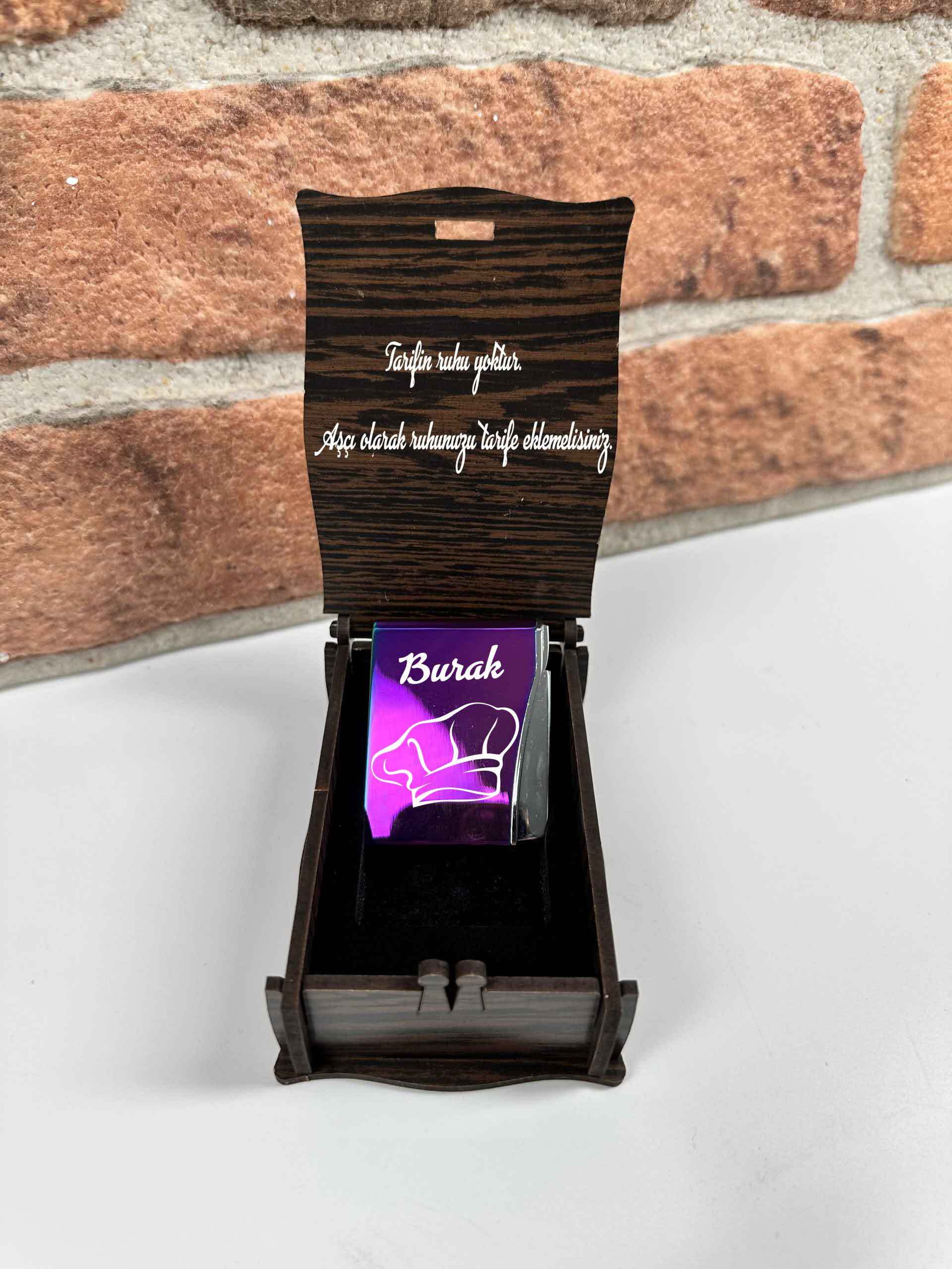 Kişiye Özel Aşçı Tasarımlı Ahşap Kutulu Rüzgarda Sönmeyen Hologram Çakmak