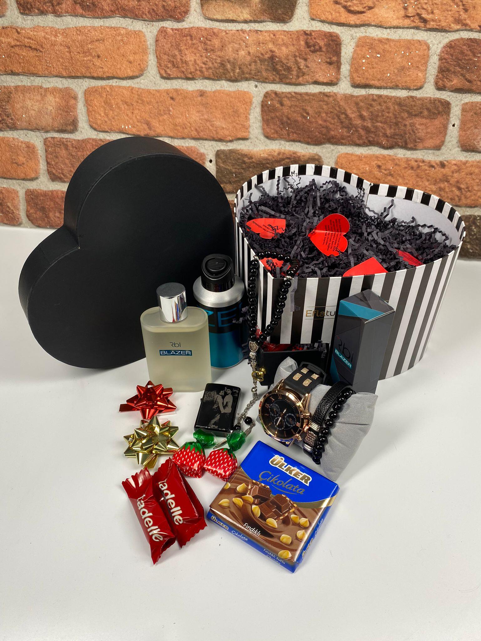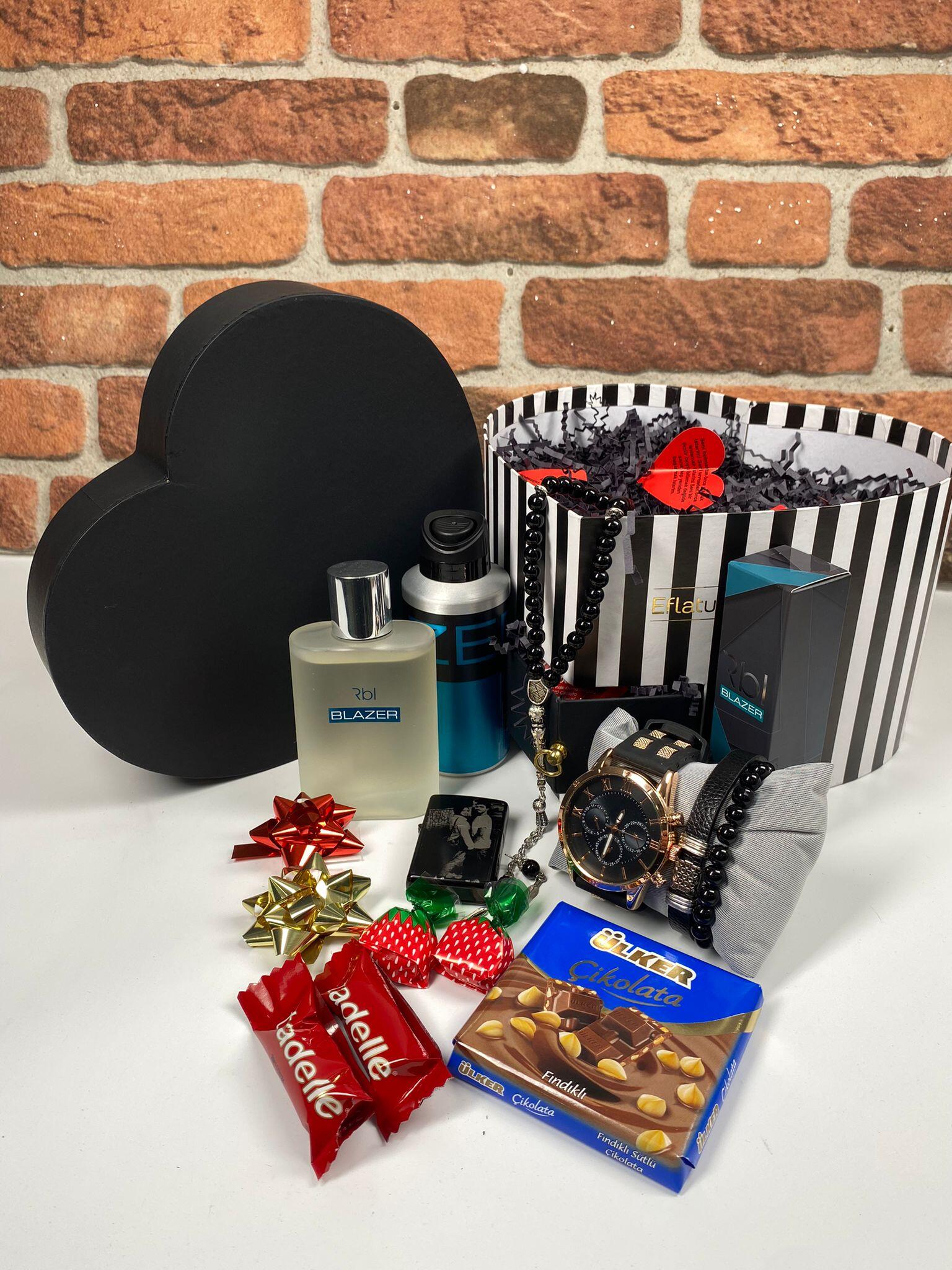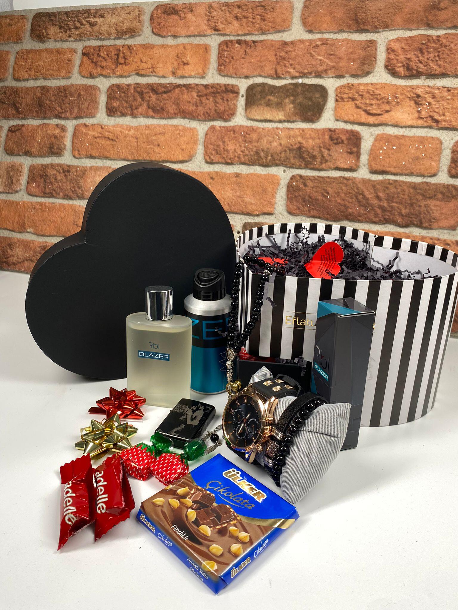 Bu eşsiz kombin seti, sevgiliniz, eşiniz, babanız veya erkek arkadaşınız için mükemmel bir hediye seçeneğidir. İçeriğindeki her bir öğe, tarzınızı ve kişiliğinizi yansıtan özel bir dokunuş sunar. Saat ve bileklik, şıklığınızı tamamlarken, deodorant, parfüm ve kolonya, taze ve hoş bir kokuyla kendinizi özel hissetmenizi sağlar. Tesbih, iç huzurunuzu yansıtan manevi bir değeri temsil ederken, çikolata tatlı bir lezzet deneyimi sunar.