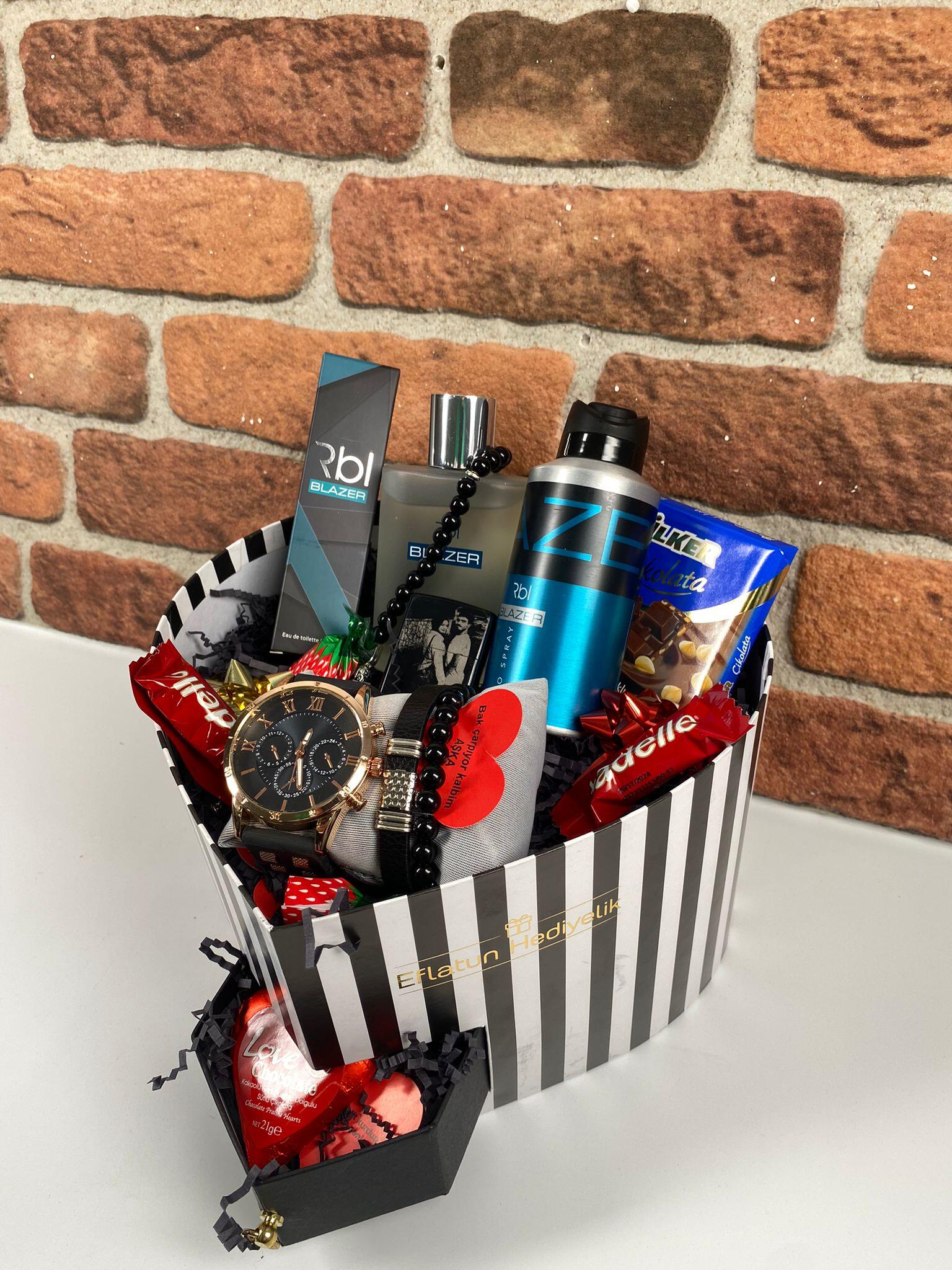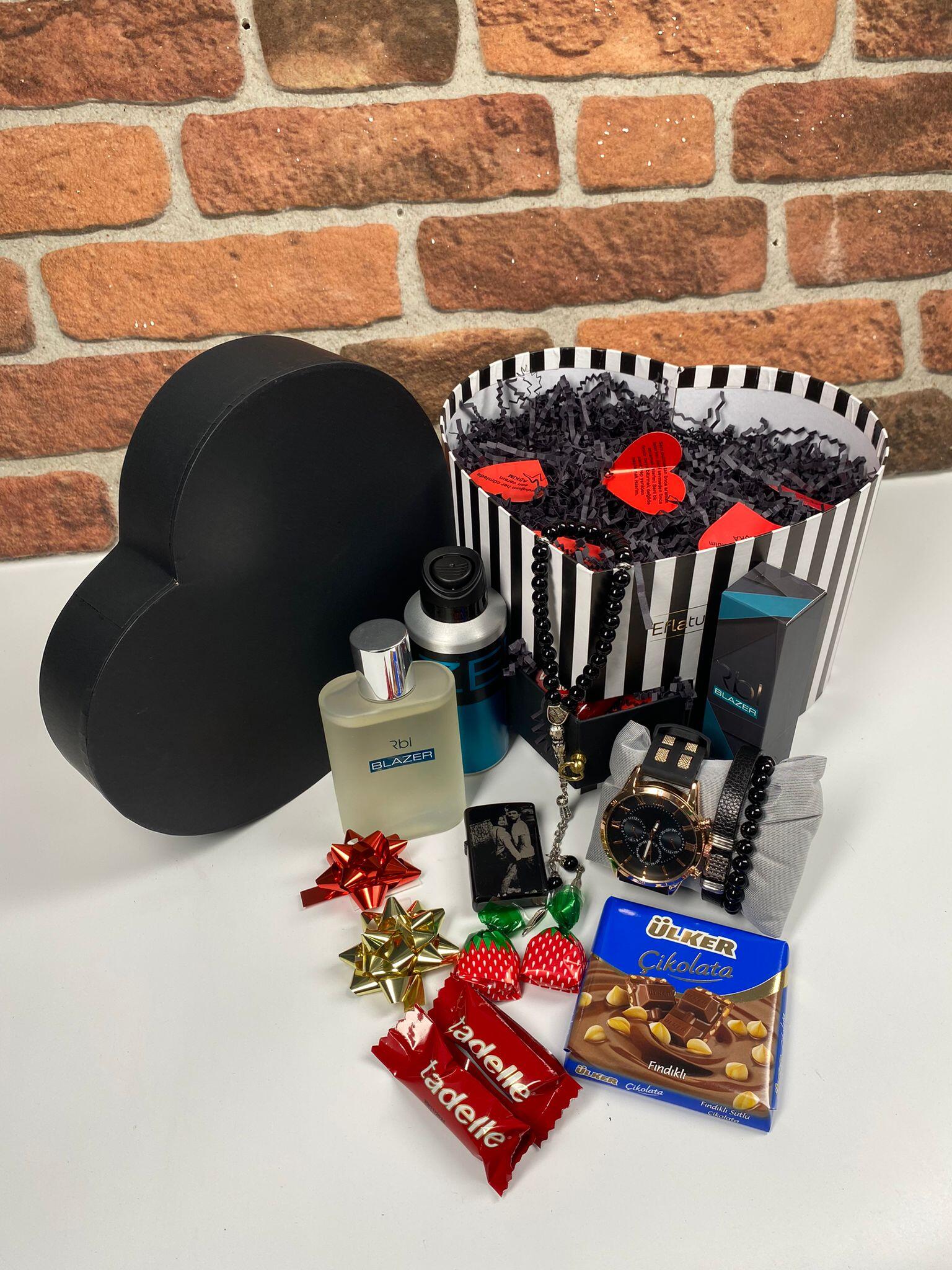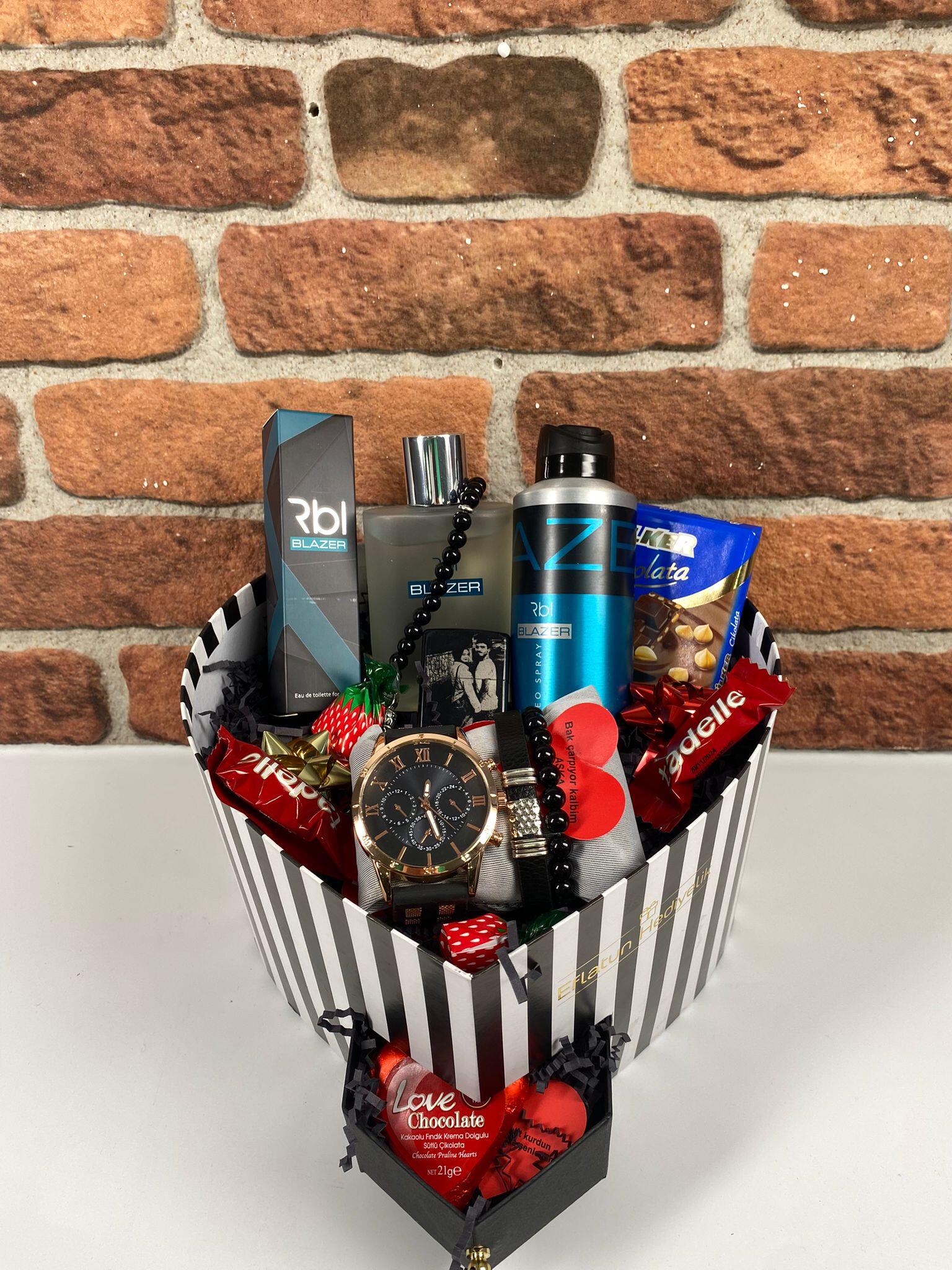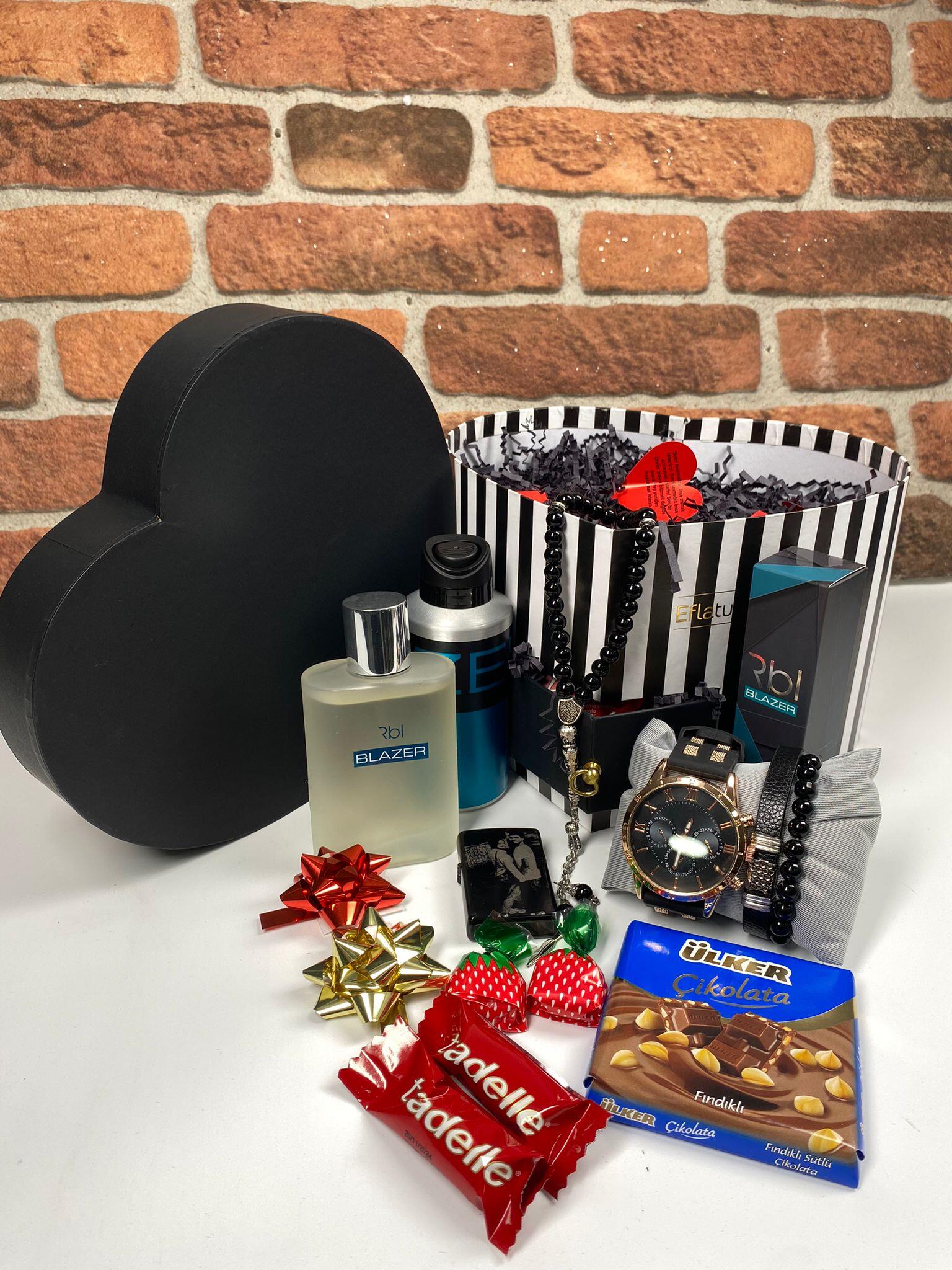 Bu eşsiz kombin seti, sevgiliniz, eşiniz, babanız veya erkek arkadaşınız için mükemmel bir hediye seçeneğidir. İçeriğindeki her bir öğe, tarzınızı ve kişiliğinizi yansıtan özel bir dokunuş sunar. Saat ve bileklik, şıklığınızı tamamlarken, deodorant, parfüm ve kolonya, taze ve hoş bir kokuyla kendinizi özel hissetmenizi sağlar. Tesbih, iç huzurunuzu yansıtan manevi bir değeri temsil ederken, çikolata tatlı bir lezzet deneyimi sunar.