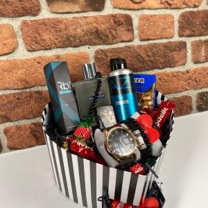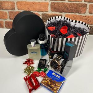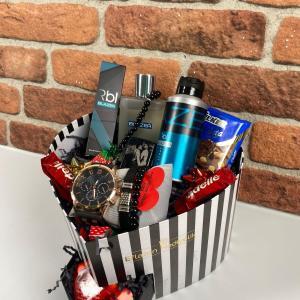 Bu eşsiz kombin seti, sevgiliniz, eşiniz, babanız veya erkek arkadaşınız için mükemmel bir hediye seçeneğidir. İçeriğindeki her bir öğe, tarzınızı ve kişiliğinizi yansıtan özel bir dokunuş sunar. Saat ve bileklik, şıklığınızı tamamlarken, deodorant, parfüm ve kolonya, taze ve hoş bir kokuyla kendinizi özel hissetmenizi sağlar. Tesbih, iç huzurunuzu yansıtan manevi bir değeri temsil ederken, çikolata tatlı bir lezzet deneyimi sunar.