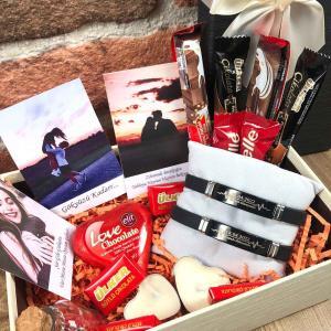 Kişiye özel ve anlamlı bir hediye arayışındaysanız mükemmel bir seçenek olabilir. Bu özel hediyelik set, içeriğinde barındırdığı iki adet bileklik ve kişiye özel fotoğraflarla dolu cam şişe ile sevgi dolu anıların taçlandığı özel bir koleksiyon sunuyor.