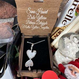 Kişiye Özel Yeni Yıl Sarılan Sevgililer Tasarımlı Kolye Set