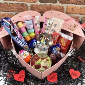 Sevginizi en özel şekilde ifade etmek için tasarlanmış lüks kalpli yana açılır kar küreli set, sevgiliniz için unutulmaz bir hediye seçeneği sunuyor. Bu özel set, romantik bir kar küresi, sevgi dolu notlar ve kadınların en sevdiği atıştırmalıklardan oluşmaktadır. Hediye kutusu ise kalp şeklinde tasarlanmıştır ve yana açılarak içerisindeki sürprizleri ortaya çıkarır.
