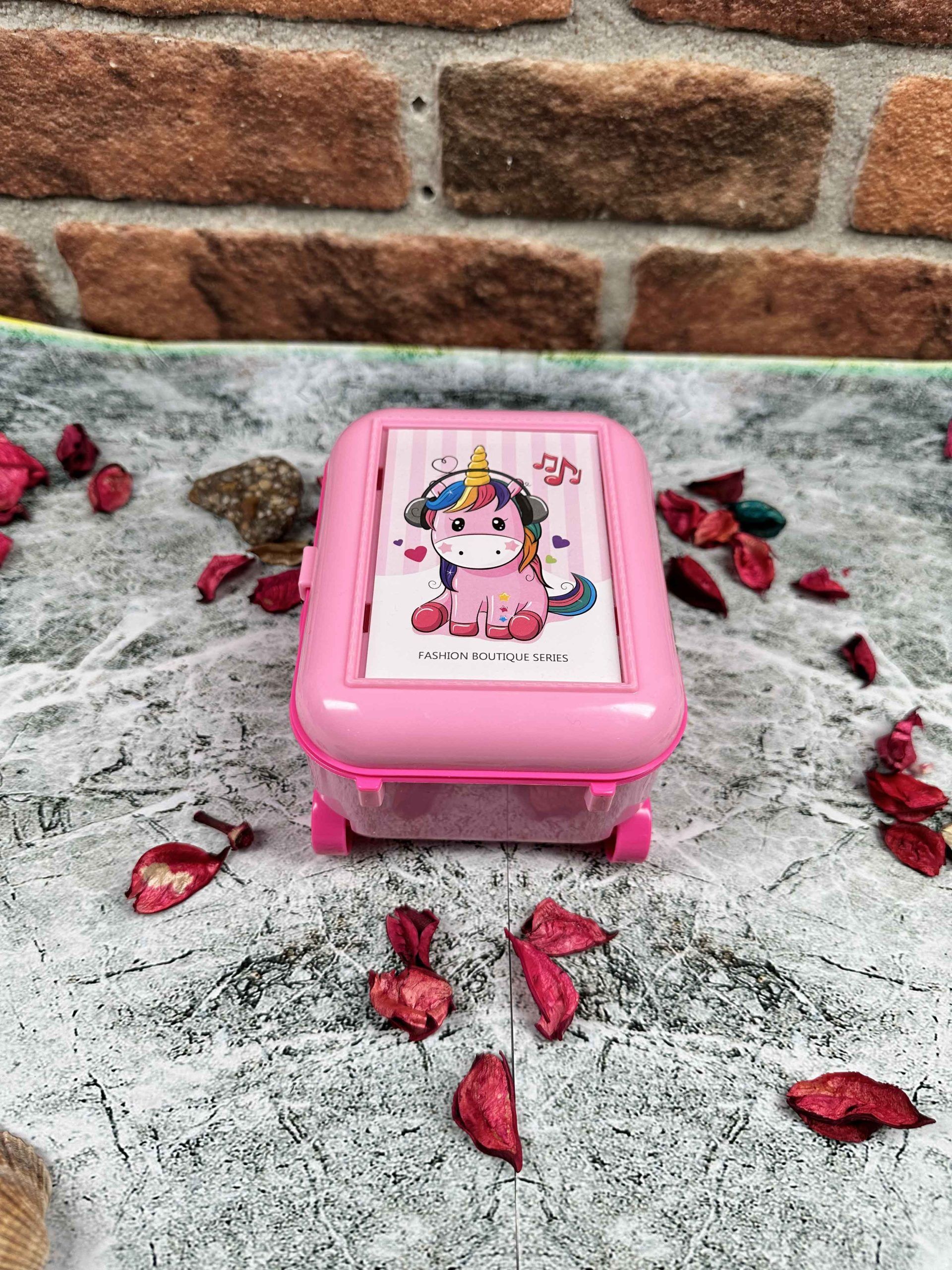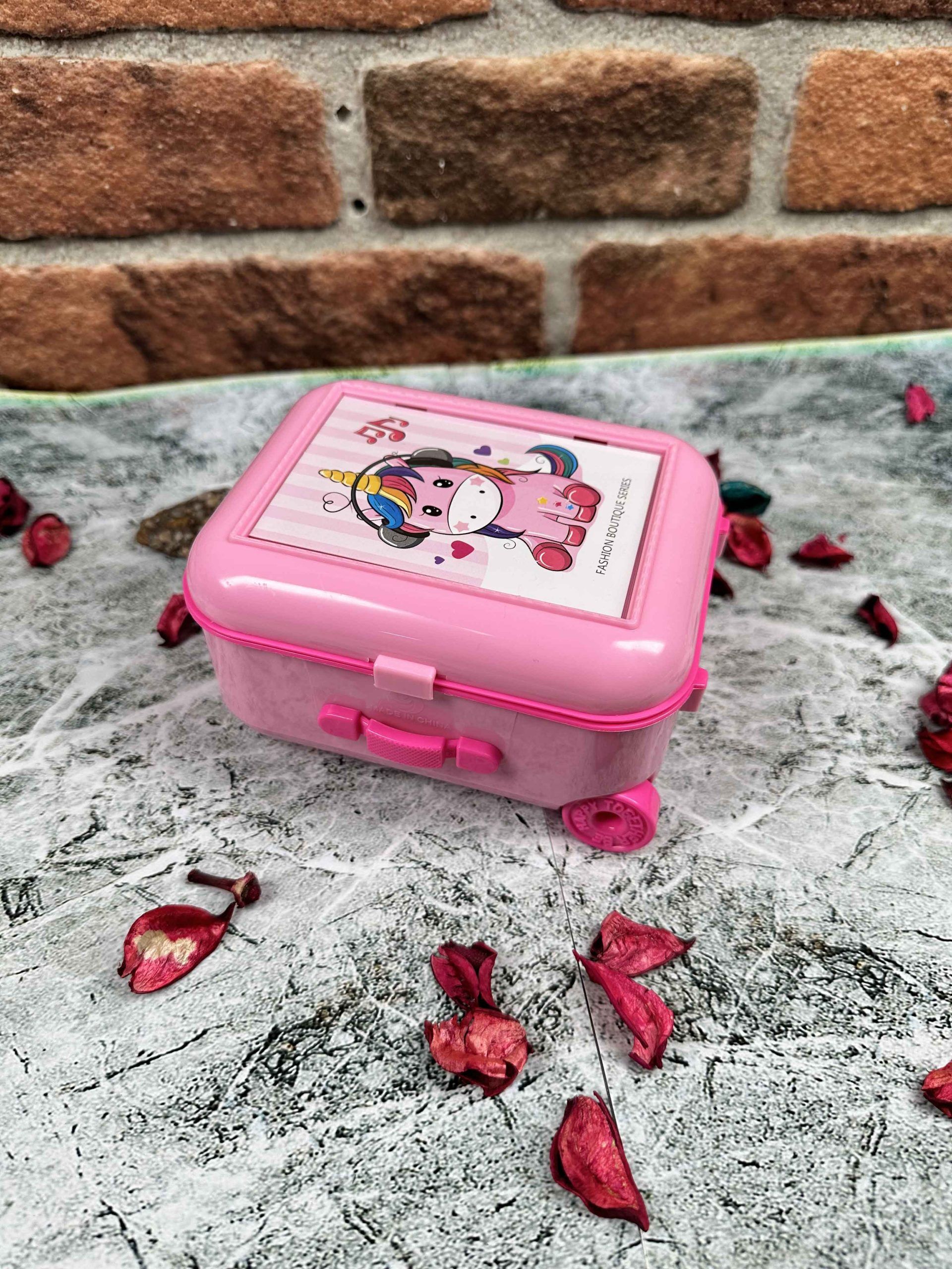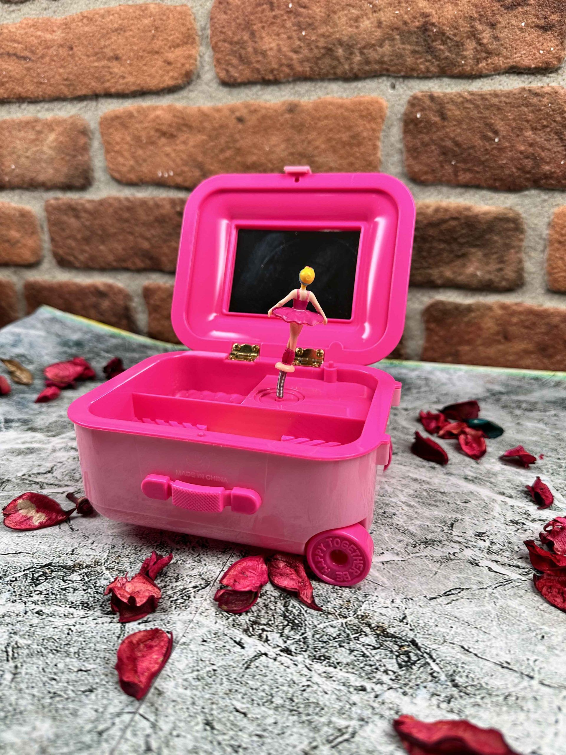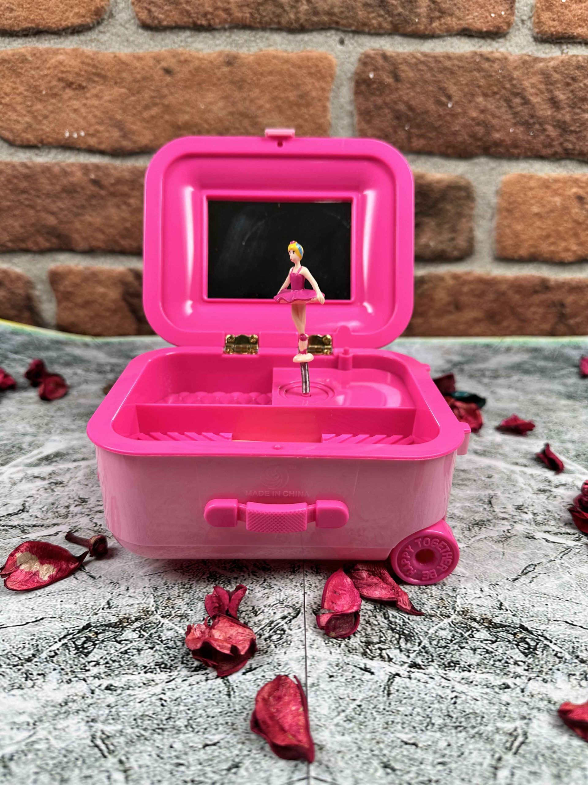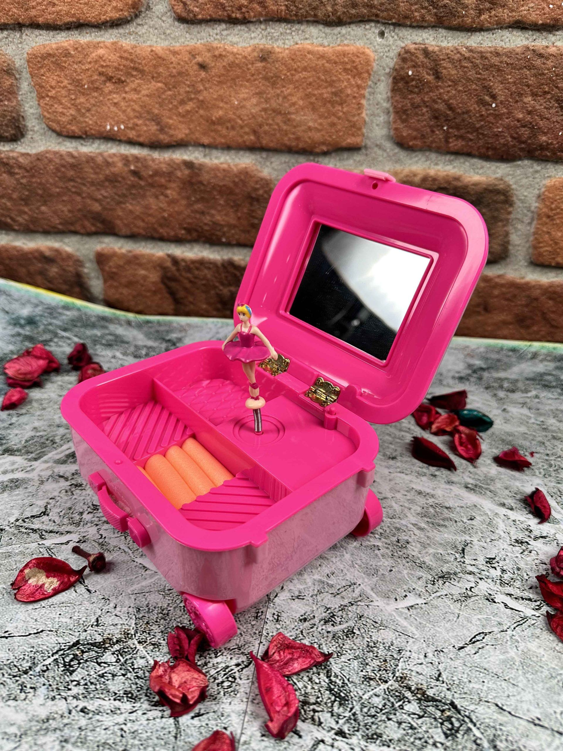 Müzik kutusu özelliğine sahiptir. Kurma kolunu kurduğunuzda içerisindeki balerin dönmeye başlar ve eşsiz bir müzik çalmaya başlar. Gerçek tekerlekli valizin birebir minyatürü olan bu kutu, açıldığında takılarınız ve yüzükleriniz için özel bölmelere sahiptir. Aynı zamanda makyaj aynası olarak da kullanılabilen bu şık ve dekoratif ürün, takı ve aksesuarlarınızı güvenli bir şekilde saklamak ve düzenlemek için ideal bir seçenektir.