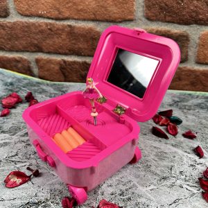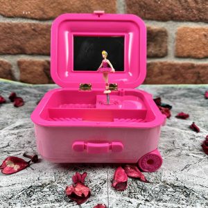 Müzik kutusu özelliğine sahiptir. Kurma kolunu kurduğunuzda içerisindeki balerin dönmeye başlar ve eşsiz bir müzik çalmaya başlar. Gerçek tekerlekli valizin birebir minyatürü olan bu kutu, açıldığında takılarınız ve yüzükleriniz için özel bölmelere sahiptir. Aynı zamanda makyaj aynası olarak da kullanılabilen bu şık ve dekoratif ürün, takı ve aksesuarlarınızı güvenli bir şekilde saklamak ve düzenlemek için ideal bir seçenektir.