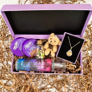 Milka Mor Konsept Kişiye Özel Kolyeli Hediye Kutusu: Tatlı Bir Sürprizle Annenizi veya Arkadaşınızı Mutlu Edin!