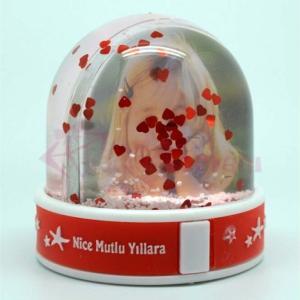 Kişiye özel kar küresi içerisinde özel fotoğraf konma yerine iki adet resminizin takılması ile hazırlanan bu karlı küre müşterileriniz için harika bir hediye seçimi olacaktır. Altlık kısmında ‘Nice Mutlu Yıllara‘ yazmaktadır.