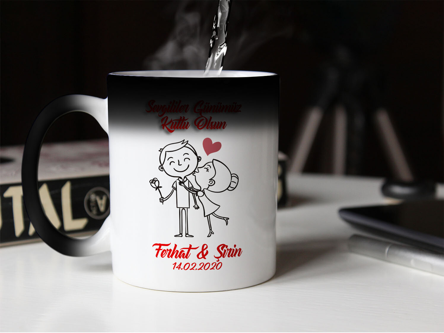 Sevgililer Günü Tasarımlı Sihirli Kupa