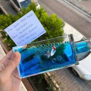 - Etkileyici Tasarım: Bu özel şişe, içerisinde gerçek deniz görünümü sunan özel bir tasarıma sahiptir. Sıvı içerisinde yüzen minyatür köpek balığı ve sörfçü figürleri, görsel olarak etkileyici bir deneyim sunar.