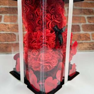 Yapay gül yapraklarından oluşan ayıcık, zarif bir tasarıma sahip yapay gül yapraklarıyla süslenmiş sevimli bir ayıcık şeklindedir. Ayıcık, 40 cm boyunda olup sevgi dolu bir ifadeyle size gülümser. Bu romantik hediye, sevdiklerinize sevginizi ifade etmenin en tatlı ve özel yollarından biridir.