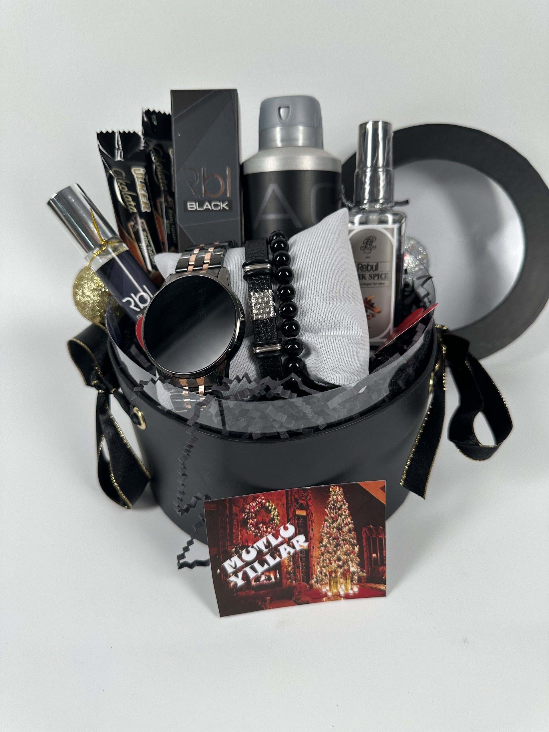 Yıl Başına Özel Erkek Set, içerisindeki özenle seçilmiş ürünlerle sevdiklerinizin yeni yıla harika bir başlangıç yapmasını sağlar. Kutu içeriği şunları barındırır: Rebul Kolonya, Parfüm ve Deodorant ile kişisel bakımlarını tamamlayabilirler. Ayrıca saat ve bileklikler, şıklıklarını tamamlamaları için harika bir seçenektir. Çikolatalar ise tatlı bir lezzet sunarak keyifli anlar yaşamalarını sağlar.